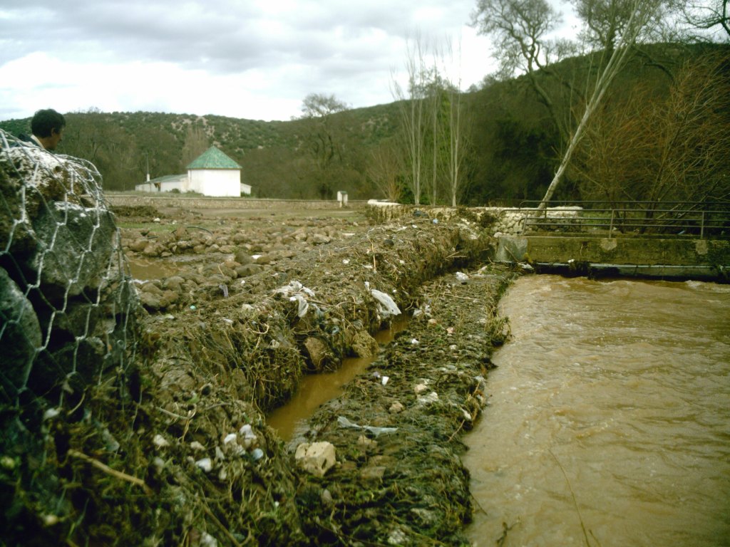 L’Agence du bassin de Sbou avait décidé d’entreprendre l’aménagement du cours d’eau en vue d’un double objectif d’expansion urbaine populaire et d’essor d’un tourisme de luxe autour de la ville d’frane qui laissait prévoir des besoins en eau décuplés et rendait donc nécessaire un vaste plan de captation des sources sur le plateau de Tarmilat et de gigantesque retenue en amont d’Ifrane, à l’endroit même où naît la rivière. La vallée était condamnée sur le papier par ces messieurs des Ministères qui ne voyaient en la province sauvage, la « petite Suisse du Maroc », qu’une poule aux œufs d’or. Dès lors il fallait justifier l’assèchement progressif de la rivière par la nécessité de protéger les populations riveraines des risques d’inondation ; il fallait assurer aux villageois que l’Etat se préoccupait de leur sécurité en endiguant leur cours d’eau et en les privant d’accès à l’eau. Les plans des ingénieurs hydrauliques de l’Agence avaient mis les moyens et prévoyaient même des digues en béton ; à défaut, comme cela se pratique souvent dans les administrations, les budgets alloués furent engloutis par les différents services impliqués et c’est un chantier au rabais qui fut mis en œuvre par moins de dix ouvriers chargés de réaliser un mur de gabion à l’aide de pierre basaltique gratuite et de quelques bobines de fil de fer. Sans doute est-ce un moindre mal.