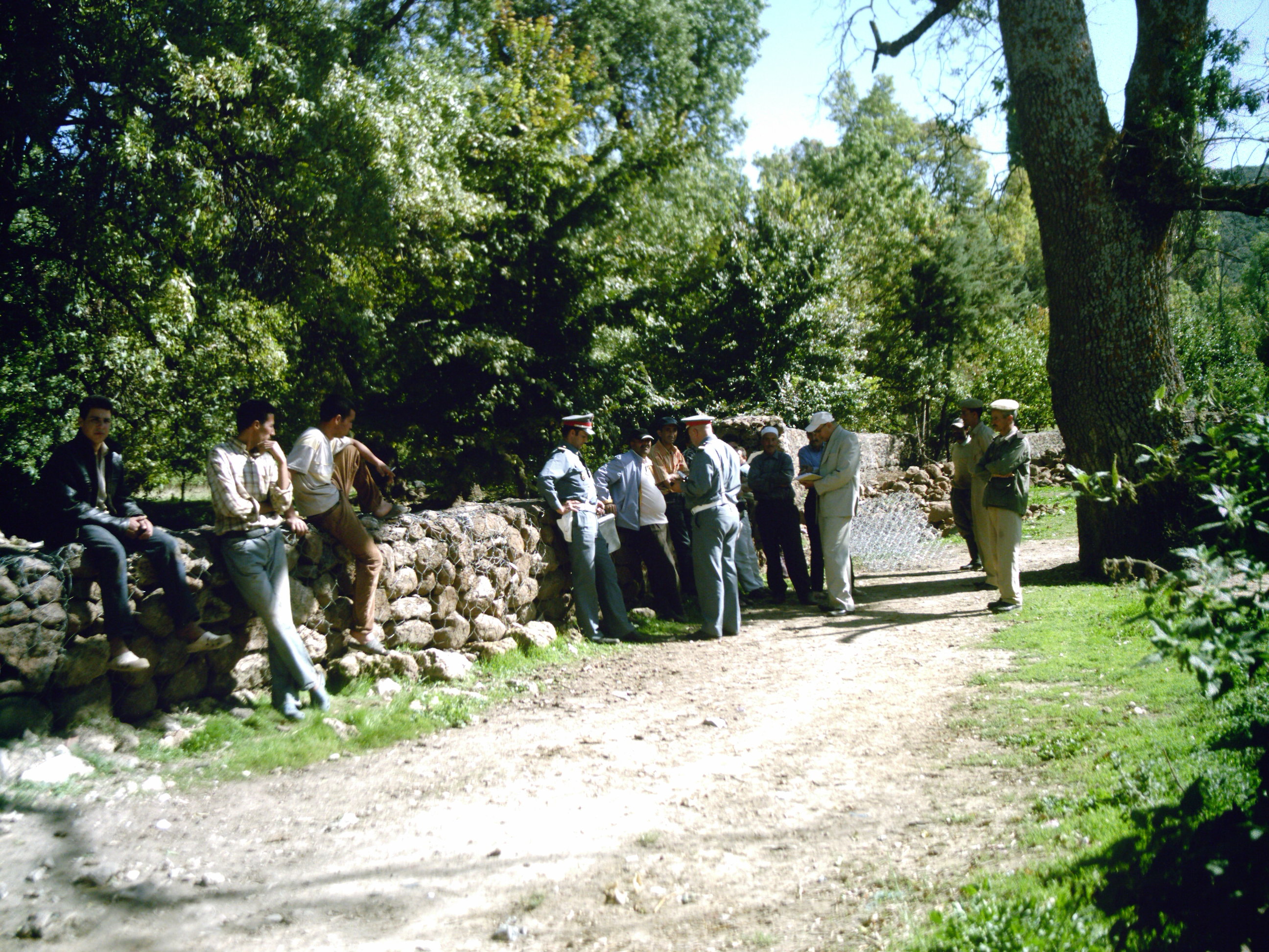Les riverains, ce sont les habitants du village de la Zaouia Sidi Abdeslam, situé à sept kilomètres en aval d’Ifrane. Une zaouia, c’est une confrérie de membres se réclamant d’un ancêtre illustre et respectés pour leur apport à la pensée et la sagesse islamique, leur rôle dans l’unification des tribus et la consolidation de l’empire chérifien. Concrètement, la tribu berbère des Aït Ifrane est un sous-groupe des Aït Wallal et Aït Enir, eux-mêmes fraction de la grande famille des Aït Atta ; ils vinrent des plaines du sud, conduits par Sidi Yacoub dès le 15ème siècle, mais c’est un arrière-petit-fils, le patriarche Sidi Abdeslem qui fonda le village d’Ifrane (ce qui signifie « les grottes ») d’habitat troglodyte sur les rives de Tizguit, initiant le peuplement de la vallée à la fin du 17ème siècle. Entre Sidi Yacoub et Sidi Abdeslem, plusieurs descendants, dans leurs pérégrinations, ont laissé leur nom dans l’histoire des lettres marocaines : auteurs de traités rhétoriques et philosophiques, fondant des écoles de pensée ou madrassas, diffusant non seulement l’Islam et la langue arabe mais aussi tout le savoir de l‘époque au croisement des religions et instruisant les fils du sultan jusqu’au cœur de la nouvelle capitale, Meknès, sans jamais renier leur langue et leur tradition berbères, leur ancrage dans la terre du Couchant ni leur Histoire millénaire. C’est ainsi qu’en 1729 le jeune sultan Moulay Abdellah ben Ismail signa le premier dahir royal qui confirmait les Chorfas d’Ifrane dans leurs droits sur le vaste territoire où Tizguit prend sa source, des monts enneigés aux collines de chêne vert en passant par la mer de cèdre, et leur en accordait le plein usufruit.